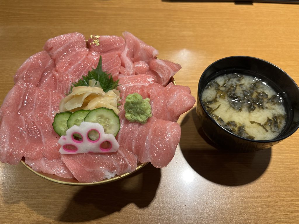 ハントンライスです。人気店で、すごく人が並んでいて1時間待ったのですが、ケチャップライスの上に卵がかぶさり、さらにその上に魚のフライやエビフライ、ケチャップ、タルタルソースがかかって絶品でした👌他にも寿司やマグロ丼など、どれも美味しかったですが、今回の一押しグルメはハントンライスでした!